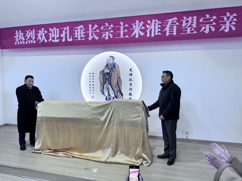 活動(dòng)之前,孔垂長(zhǎng)與孔令發(fā)共同為《孔子世家譜·淮北卷》及“孔子學(xué)堂”孔子像揭幕,象征家族文脈與儒家精神代代相傳。