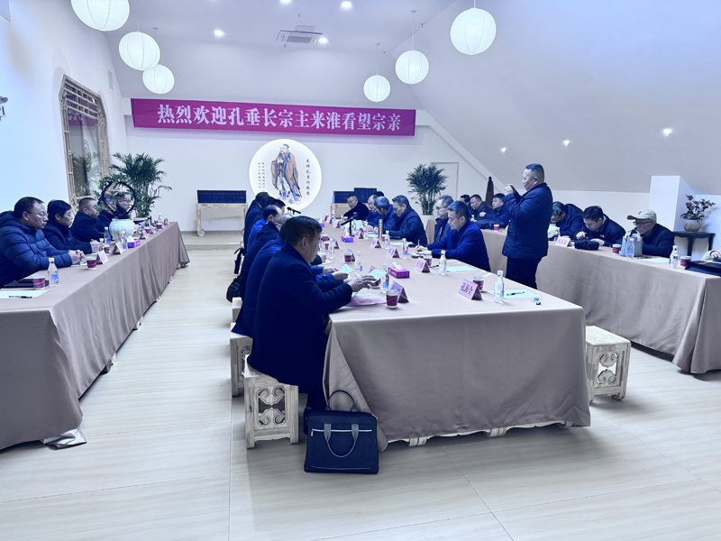 當(dāng)日下午,安徽孔子后裔聯(lián)誼會(huì)淮北分會(huì)在中泰商場(chǎng)五樓孔子學(xué)堂召開歡迎孔垂長(zhǎng)宗主來淮看望宗親座談會(huì),30余位宗親代表圍繞家譜續(xù)修、文化傳承等議題深入交流。
