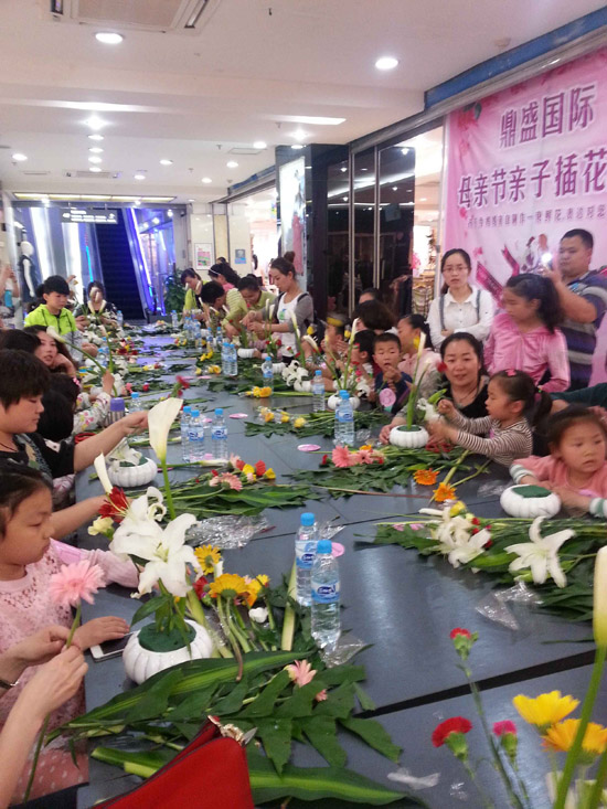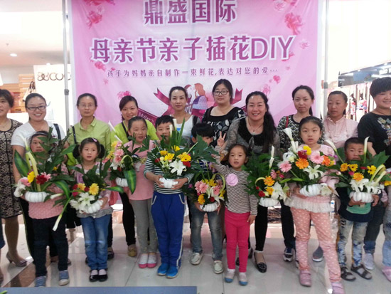 溫馨五月天,感恩母親節(jié)。值2015年“母親節(jié)”來臨之際,鼎盛國際為豐富VIP顧客互動形式,特別邀請了20位尊貴的VIP顧客及她們的孩子,于母親節(jié)當(dāng)天下午來到鼎盛國際三樓商場開展了主題為“媽媽我愛你”的親子DIY插花活動。