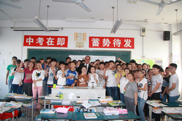 蘭迪市長在孔令發(fā)董事長的陪同下參觀淮北天一中學(xué)