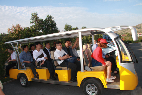 蘭迪市長一行饒有興致的乘坐觀光車參觀烈山區(qū)榴園村與石榴文化博物館