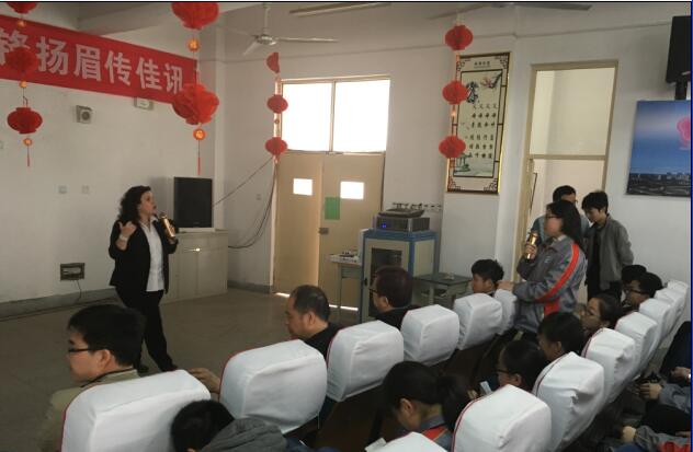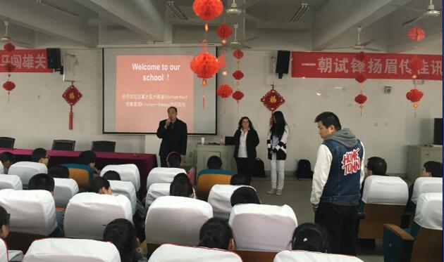 在參訪過程中,Kirsten一行走進天一高中部高一(3)班與初中部初一的3個班級與同學們進行簡短的互動交流。隨后,Kirsten在多媒體教室向同學們推介了查塔姆肯特市的地理區(qū)位以及教育環(huán)境,還重點向同學們介紹了她們市教育局的教學理念與學習氛圍。最后,Kirsten向在座的學生們發(fā)出誠摯的邀請。同時,學生們也就自己感興趣的問題向Kirsten一一詢問。