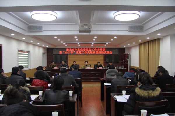 2017年1月12日下午,淮北市個私黨委召開了黨務(wù)工作者培訓(xùn)暨先進(jìn)典型經(jīng)驗(yàn)交流會。市工商局程春芳副局長、市個私黨委委員、紀(jì)檢委員、天象集團(tuán)黨委副書記王安惠以及集團(tuán)下屬4個黨支部的黨務(wù)工作者共計(jì)50余人參加了培訓(xùn)會議。