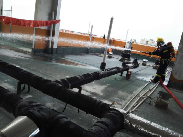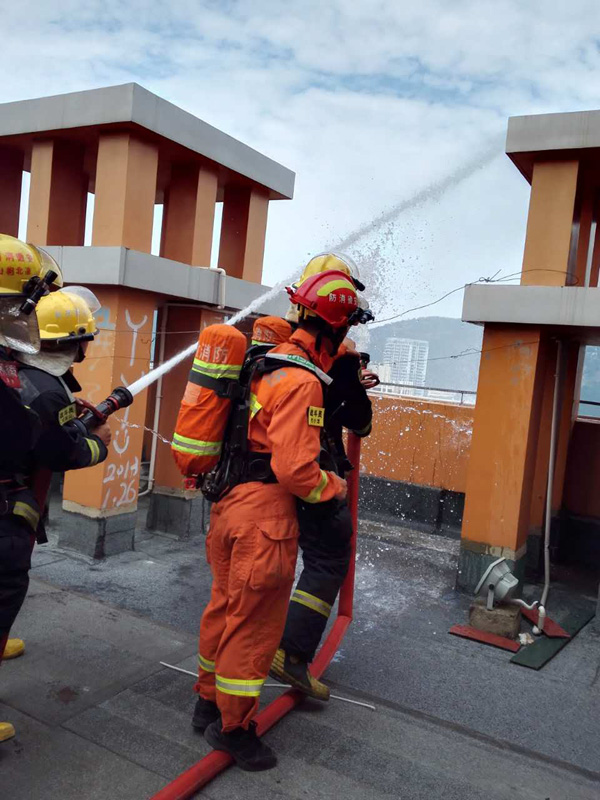 本次演練由相山區(qū)消防大隊孫健副大隊長指揮,二十余名消防官兵參加。消防官兵首先對金淮北大廈所屬消防栓、消防通道等消防設施進行了熟悉;隨后,假設大廈頂樓發(fā)現(xiàn)火情,由消防隊員攜全套裝備開展水帶布設、泡沫滅火、消防水壓測試、消防員登頂時間測試等多項內容的演練,演練活動于11:30順利圓滿結束。