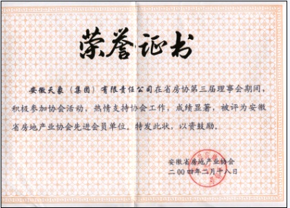 2004年安徽房地產(chǎn)業(yè)協(xié)會(huì)先進(jìn)會(huì)員