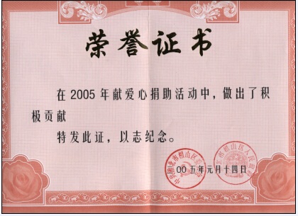 2005年愛心捐助證書