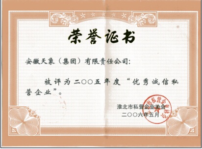 2006年淮北市優(yōu)秀誠(chéng)信企業(yè)