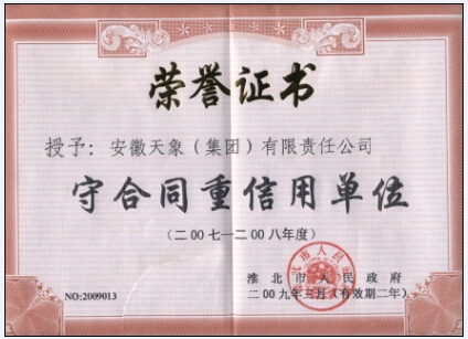 2007-2008年淮北市守合同重信用單位榮譽(yù)證書(shū)