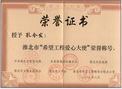 2007年孔令發(fā)董事長獲評(píng)希望工程愛心大使