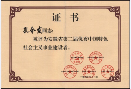 2009年孔令發(fā)董事長(zhǎng)獲評(píng)優(yōu)秀社會(huì)主義事業(yè)建設(shè)者