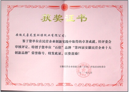 2011年第四屆安徽民營企業(yè)十大創(chuàng)新品牌證書