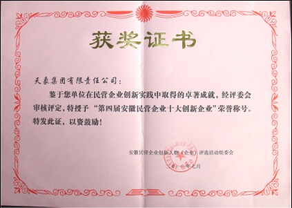 2011年第四屆安徽民營企業(yè)十大創(chuàng)新企業(yè)