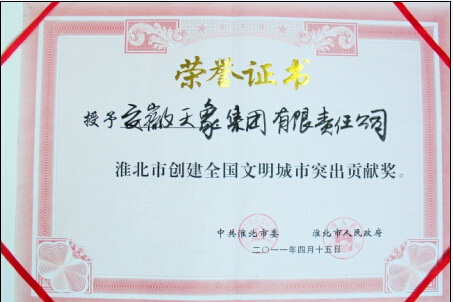 2011年淮北市創(chuàng)建全國文明城市突出貢獻(xiàn)獎(jiǎng)